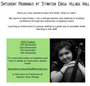 Stanton Drew Strings Music Tuition sessions 9:45 to 2pm Stanton Drew Strings with Lizzy Evans lizzyevans.misicofficial@hotmail.com + Add to Google Calendar + iCal / Outlook export Date Dec 06 2025 Expired! Time 9:45 am - 2:00 pm Location Location Name Category Education Organizer Lizzy Evans Email lizzyevans.musicofficial@hotmail.com Share this event